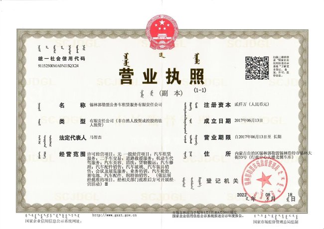 錫林郭勒盟公務(wù)車租賃服務(wù)有限責(zé)任公司成立于2017年6月,公司注冊(cè)資本2000萬(wàn)元。坐落于錫盟黨政大樓北側(cè)與錫盟福達(dá)駕校隔路相對(duì),是一家國(guó)有獨(dú)資企業(yè)。其前身歸屬于錫林郭勒職業(yè)學(xué)院,2021年以全資子公司的形式劃轉(zhuǎn)至錫盟城投集團(tuán)。